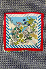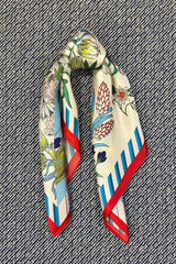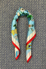 Silk scarf light blue/off white/red multi flower