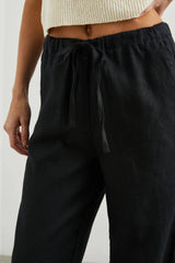 Emmie bukserne fra Rails er en buks med høj talje, brede ben, lavet i en luksuriøs tung hør kvalitet med justerbar snøre i taljen.