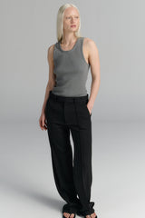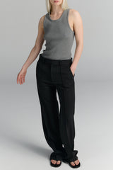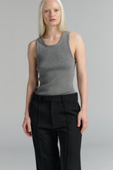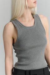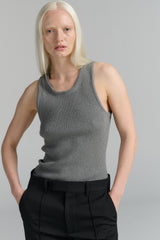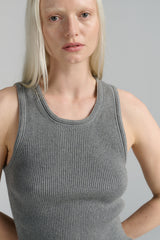 Det hollandske mærke Rhea, er en ny tilføjelse til vores sortiment dette efterår. Deres tank top i rib strik er lavet en en bomuld/cashmere blanding og kan bruges både for sig og som lag indenunder eller udenpå. Modellen er tætsiddende, men fleksibel i størrelsen, da den er lavet i ribstrik.