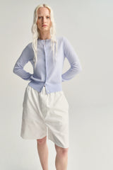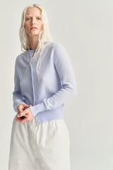 Denne enkle, klassiske cardigan fra det hollandske mærke Rhea, er lavet i en blød merino uld/cashmere blanding. Modellen har rund hals, knapper i perlemor og kanter i rib. Pasformen er smal og lidt kort i længden.