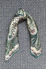 De små silketørklæder er bandana størrelse, og lavet til at kunne binde i en enkelt knude om halsen.