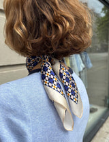 De små silketørklæder er bandana størrelse, og lavet til at kunne binde i en enkelt knude om halsen.