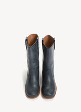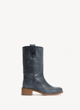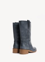 Absolut bestseller fra Dico Copenhagen, Julia boots i indigo blue. Styles med nederdel og bare ben eller kraftige strømpebukser til efterår og vinter. Kan også styles under bukser.