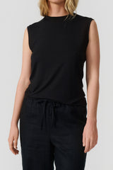 Leonora top i viskose/elastan, viskoseblandingen er blød og behagelig at have på, og falder flot. Toppen har en løs, afslappet pasform, med brede skuldre og en rund hals.