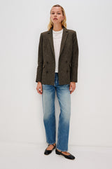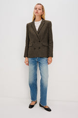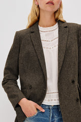 The new Jac blazer from Rails is a classic double breasted blazer made from a thick cotton with herringbone print. The blazer is lined and features flap pockets and a slit in the back.