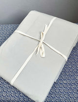 The flat double sheet is made of an organic and GOTS certified cotton. The cotton has a nice and crispy feel which is great to sleep in. The sheet measures 240 cm x 240 cm.
