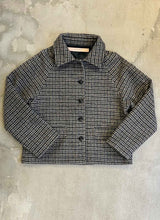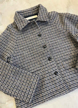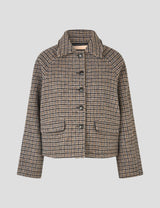 Kristine is the perfect transitional jacket, a short jacket made in a luxurious wool bought in Italy. The jacket is loose fitted with raglan sleeves, flap pockets and rounded dark brown buttons. The fabric is quite heavy, so jacket is warm.