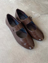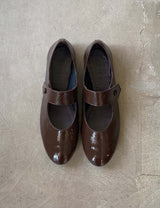 The Greta mary jane is a new style this season from Augusta the brand. The shoe is made of patent leather and has a wide strap with a push button.
