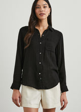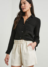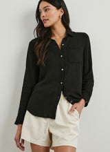 The Ellis shirt from the American brand Rails is an absolute best seller which we have been carrying for many years. It has a flattering shape and  is made in a lovely cotton gauze material. The shirt has mother of pearl buttons and a single breast pocket. The fit is loose and has a slightly longer hem in the back.