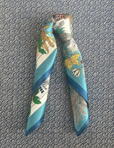 The small silk scarves are meant to be tied in a single knot around the neck.
