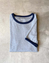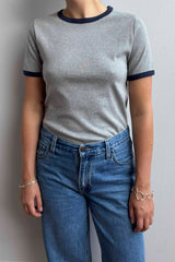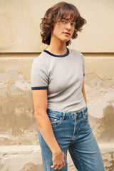 Rib t-shirt in grey melange with dark blue melange contrast trimmings.