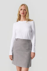 Bella is our long sleeve t-shirt made of a soft viscose blend. The t-shirt is comfortable to wear and the fabric is flattering on the body. Bella has a normal fit and a classic round t-shirt neckline.