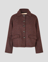 Kristine is the perfect transitional jacket, a short jacket made in a luxurious wool bought in Italy. The jacket is loose fitted with raglan sleeves, flap pockets and rounded dark brown buttons.
