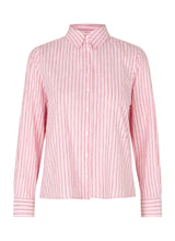 The Lea shirt is the newest addition to our own collection. It has a fine stitching along the sleeve and back yoke and it is a little loose in the fit. This shirt is made in an italian deadstock cotton fabric with fine stripes in burgundy and white and is only produced in a limited number of 20 pcs in total.