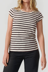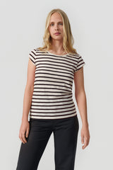 LiLiu short sleeve t-shirt cream/dark brown stripe