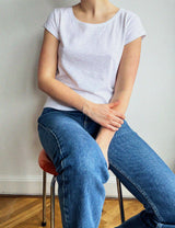 Liu is one of our classic t-shirts and have been for many years. The t-shirt is made of organic GOTS certified cotton in a flamé quality. Liu has a round, slightly open neck, a sleeve that cuts just below the shoulder and a regular fit.