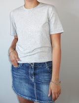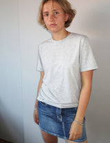 Mia is a classic short sleeve t-shirt with a loose and relaxed fit and a round neck. It is made of a viscose blend which is soft and comfortable and also drapes nicely to the body.
