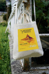 Totebag fra franske Le Mont Saint Michel. Lavet i kraftig kanvas med lille lomme på bagsiden der måler 17 x 20 cm. Selve tasken måler 34 cm i bredden og 42 cm i længden, hank længde 64 cm.