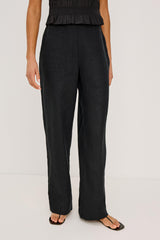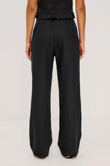 Andrine bukserne fra Rails er en buks med mellem høj talje, brede ben, lavet i en luksuriøs tung hør kvalitet med usynlig elastisk talje og lynlås i siden.