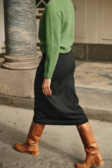Claude nederdelen er en lang, høj taljet nederdel i en lækker deadstock uld kvalitet. Nederdelen har en slank silhouet med en let a-form og har lynlås i siden. Claude nederdelen er almindelig i størrelsen.