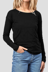 Dorrie er vores bedst sælgende langærmede t-shirt i GOTS certificeret økologisk bomuld. Bomulden er i flamé kvalitet og modellen har en bred båd udskæring, lave skuldre og smalle ærmer. Pasformen er løs i kroppen.