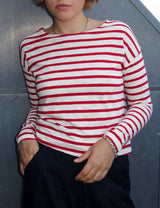 Dorrie er vores bedst sælgende langærmede t-shirt i GOTS certificeret økologisk bomuld. Bomulden er i flamé kvalitet og modellen har en bred båd udskæring, lave skuldre og smalle ærmer. Pasformen er løs i kroppen.