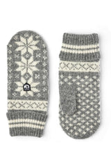 Strikkede vanter i uld med Fair Isle mønster. Vanterne har en elastisk ribkant.