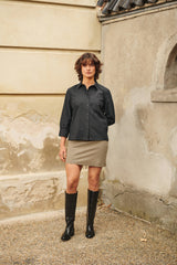 Laura skjorten er en af vores seneste tilføjelser til vores skjortekollektion, lavet i eksklusiv deadstock, hvoraf der kun er lavet 14 i alt i dette materiale. Modellen er skåret lige, med små slidser i siderne, brystlomme og indsnit bagpå. Ærmerne er 3/4 lange og lidt løse forneden.