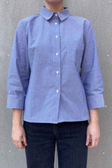 Laura skjorten er en af vores seneste tilføjelser til vores skjortekollektion, lavet i eksklusiv deadstock bomuldskvalitet, hvoraf der kun er lavet 25 i alt i dette materiale. Modellen er skåret lige, med små slidser i siderne, brystlomme og indsnit bagpå. Ærmerne er 3/4 lange og lidt løse forneden.