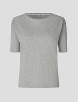 Louisa er en af vores klassiske t-shirts i økologisk GOTS certificeret bomuld, som er en fast del af vores sortiment. Bomulden er i flamé kvalitet og modellen har en klædelig facon med en bred båd udskæring, lave skuldre og smalle ærmer, der slutter lige over albuen. Pasformen er løs i kroppen.