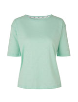 Louisa er en af vores klassiske t-shirts i økologisk GOTS certificeret bomuld, som er en fast del af vores sortiment. Bomulden er i flamé kvalitet og modellen har en klædelig facon med en bred båd udskæring, lave skuldre og smalle ærmer, der slutter lige over albuen. Pasformen er løs i kroppen.