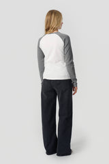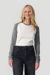 Rib langærmet t-shirt i råhvid med grå meleret kontrast ærmer og halskant.