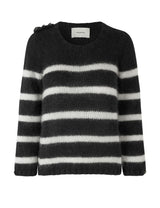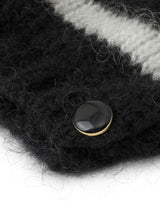 Norma strikken er håndstikket i ekslusivt mohair garn. Den har lyse guld knapper på den ene skulder, elastisk læg detalje og knap på ærmet og har en almindelig pasform.