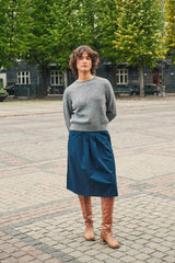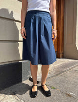 Feminin nederdel i navy, nederdelen er en af vores seneste tilføjelser til vores nederdels-kollektion, lavet i ren bomuld.