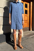 Feminin skjortekjole med et lille læg ved ærmegab samt små læg ved skulder, ærmer til albuen med lidt rynk og 2 knapper til lukning, rund krave.