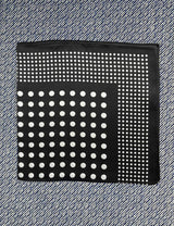 Dette silketørklæde har en sort baggrund med hvide prikker.
