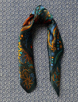 • Silk scarf bottle green/orange/blue paisley