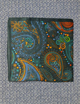 Silk scarf bottle green/orange/blue paisley