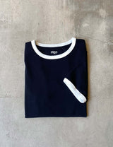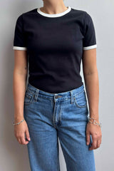 Rib t-shirt i sort med råhvide kontrast kanter.