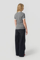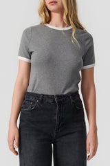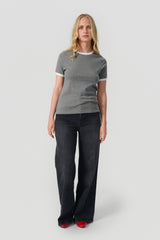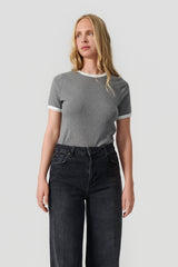 Rib t-shirt i grå meleret med råhvide kontrast kanter.